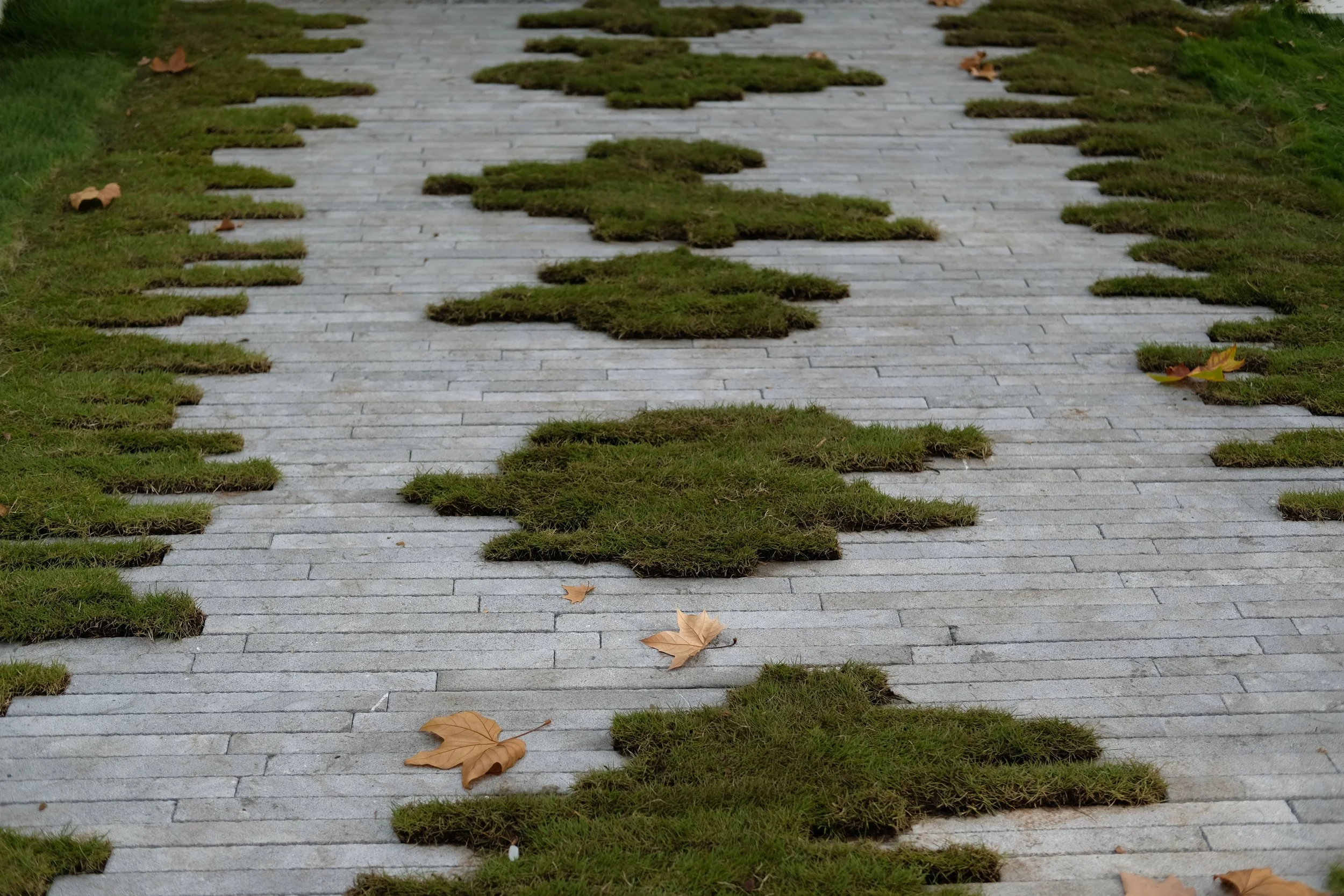 Cor-Ten steel edging separating garden beds and paving